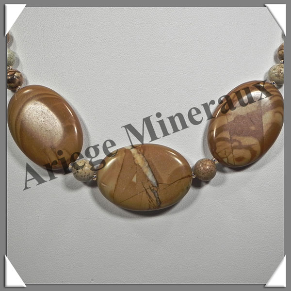 JASPE PAYSAGE - Collier Composé - 3 Ovales 25x25 mm et Perles 8 mm en dégradé - 44 cm - C001 |