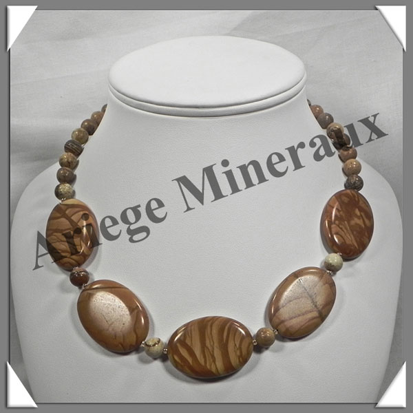JASPE PAYSAGE - Collier Composé - 5 Ovales 25x25 mm et Perles 8 mm en dégradé - 44 cm - C003 |