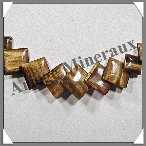 OEIL DE TIGRE - Collier Composé - Carrés de 10 à 15 mm en dégradé - 41 cm - C001 Afrique du Sud