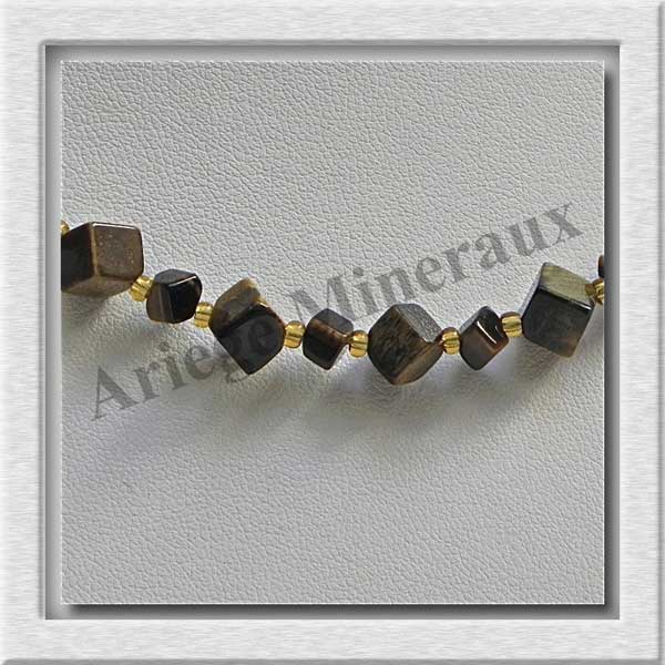 OEIL DE TIGRE - Collier Composé - Cubes 4 et 6 mm en dégradé - 47 cm - C001