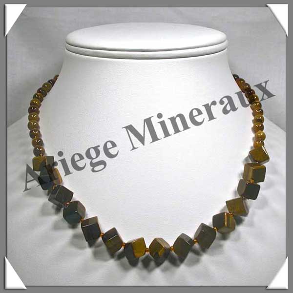 OEIL DE TIGRE - Collier Composé - Cubes 8 mm et Perles 6 mm en dégradé - 45 cm - C002