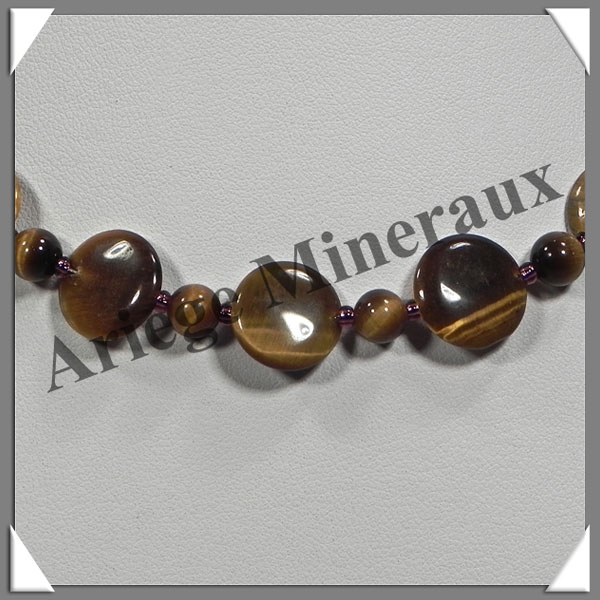OEIL DE TIGRE - Collier Composé - Disques 14 mm et Perles 4 mm alternés - 42 cm - C001