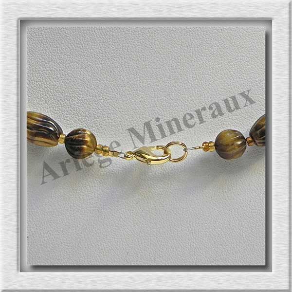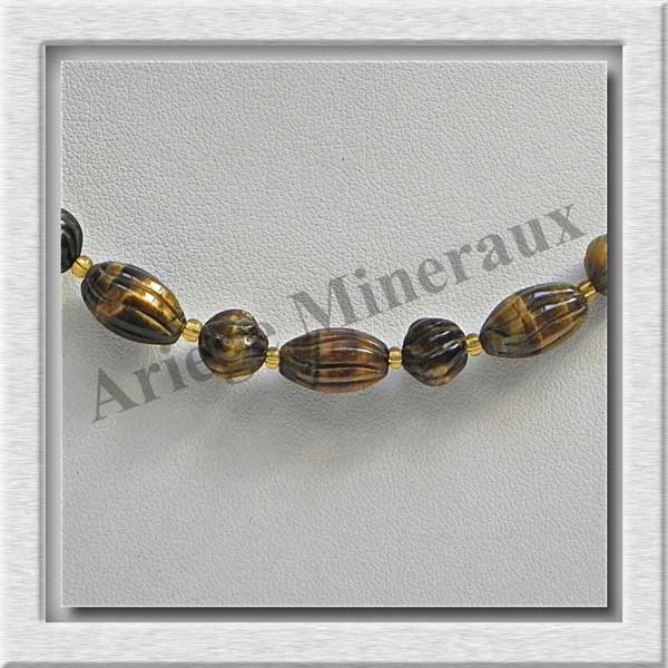 OEIL DE TIGRE - Collier Composé - Olives Ciselées 12x8 mm et Perles Ciselées 8 mm alternées - 45 cm - C008