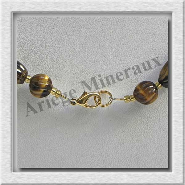 OEIL DE TIGRE - Collier Composé - Olives Ciselées 12x8 mm et Perles Ciselées 8 mm alternées - 47 cm - C006