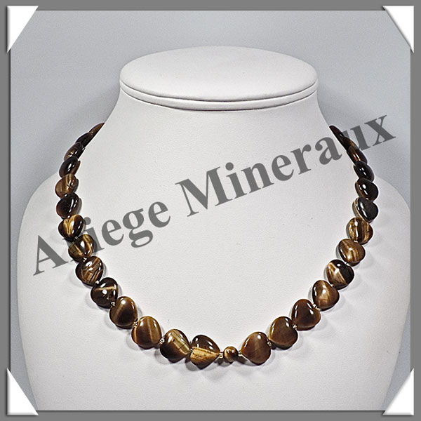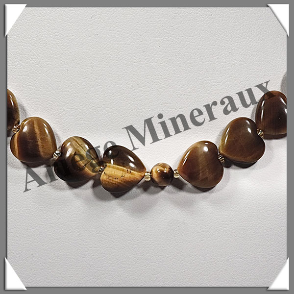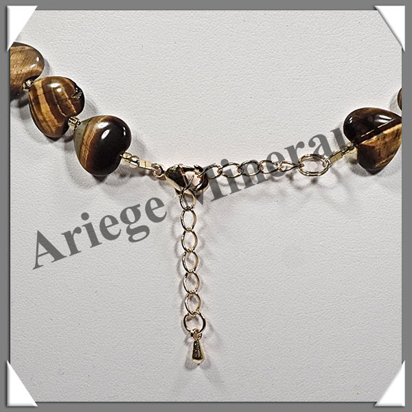OEIL DE TIGRE - Collier Composé - Coeurs de 12 mm - 44 cm - C005