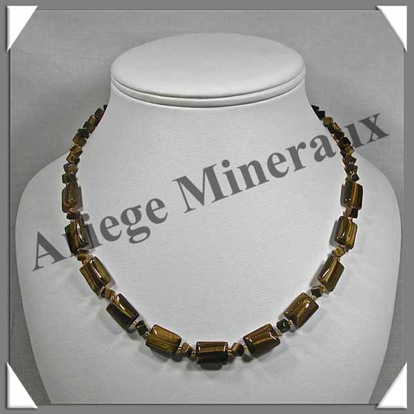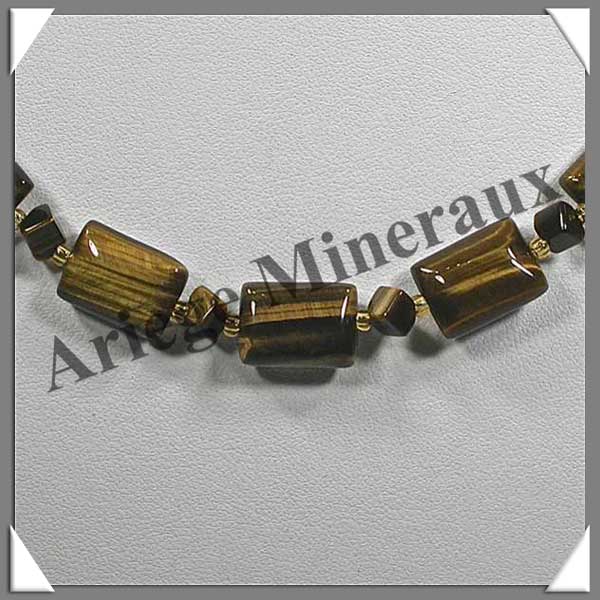 OEIL DE TIGRE - Collier Composé - Rectangles 12x10 mm et Cubes 4 mm en dégradé - 45 cm - C003