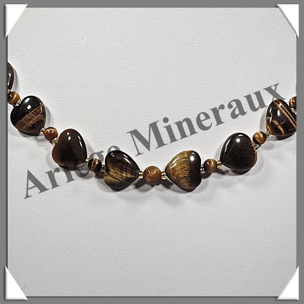 OEIL DE TIGRE - Collier Composé - Coeurs de 12 mm et Perles de 4 mm alternés - 45 cm - C001
