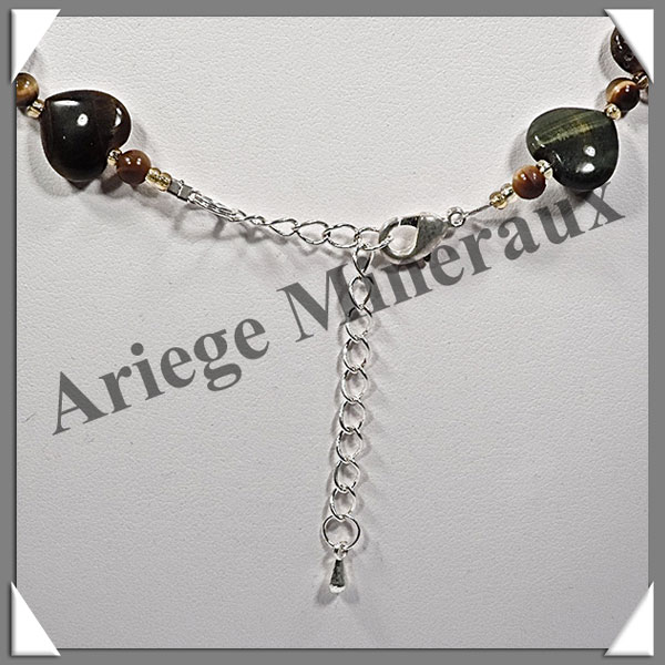 OEIL DE TIGRE - Collier Composé - Coeurs de 12 mm - 44 cm - C004 Afrique du Sud