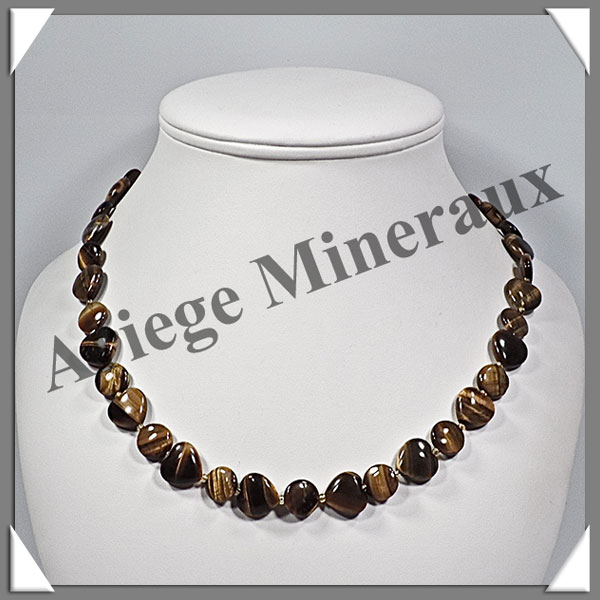 OEIL DE TIGRE - Collier Composé - Coeurs et Disques de 12 mm - 45 cm - C008
