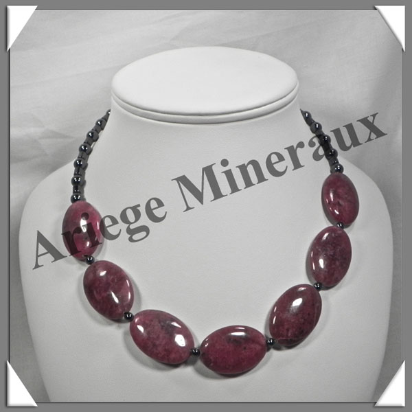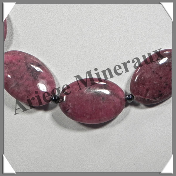 RHODONITE - Collier Composé - 7 Ovales 30x20 mm et Perles Hématite 6 mm - 45 cm - M003 |