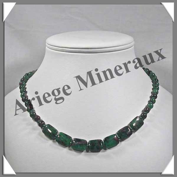 ZOIZITE RUBIS - Collier Composé - Rectangles 14x10 mm et Perles 6 mm en dégradé - 44 cm - M003 |