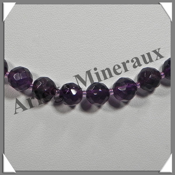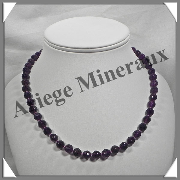 AMETHYSTE Foncée - Collier Perles Facetées 8 mm - 45 cm - C002