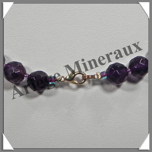 AMETHYSTE Foncée - Collier Perles Facetées 10 mm - 44 cm - A003 Uruguay