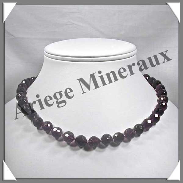 AMETHYSTE Foncée - Collier Perles Facetées 10 mm - 44 cm - A003