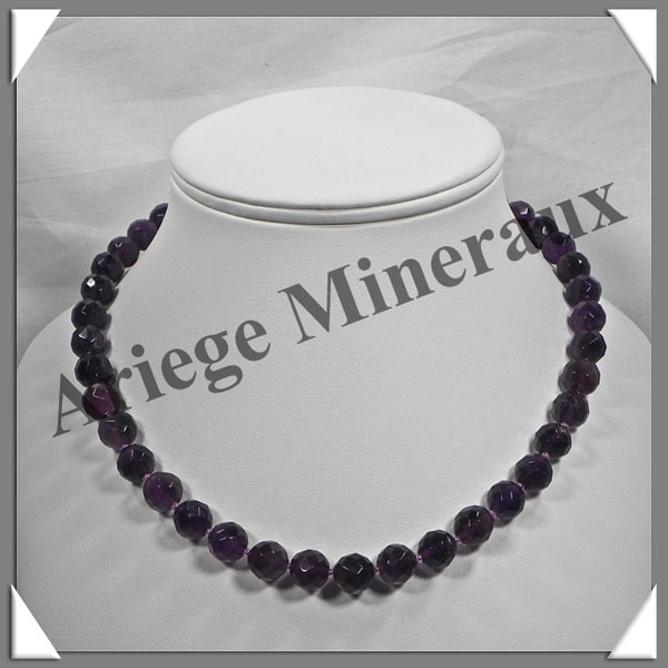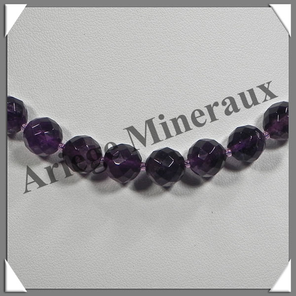 AMETHYSTE Foncée - Collier Perles Facetées 10 mm - 45 cm - A007