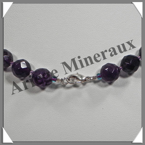 AMETHYSTE Foncée - Collier Perles Facetées 10 mm - 44 cm - A002 Uruguay