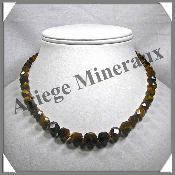 OEIL DE TIGRE - Collier Perles Facetées 4 à 12 mm en dégradé - 43 cm - A002