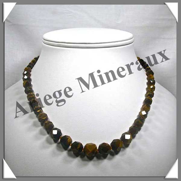 OEIL DE TIGRE - Collier Perles Facetées 4 à 12 mm en dégradé - 43 cm - A004