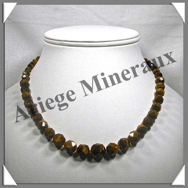 OEIL DE TIGRE - Collier Perles Facetées 4 à 12 mm en dégradé - 44 cm - A005