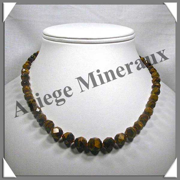 OEIL DE TIGRE - Collier Perles Facetées 4 à 12 mm en dégradé - 44 cm - A006