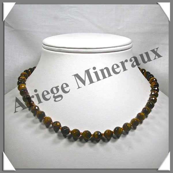 OEIL DE TIGRE - Collier Perles Facetées 8 mm - 43 cm - A003