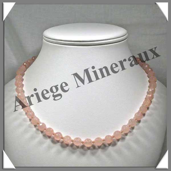 QUARTZ ROSE - Collier Perles Facetées 8 mm - 49 cm - A003 |