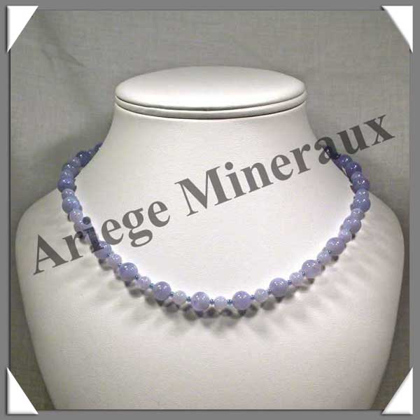 Vendu  CALCEDOÏNE BLEUE - Collier Perles 8 mm - 46 cm - C012 Namibie