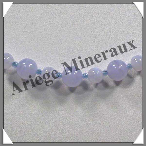 CALCEDOÏNE BLEUE - Collier Perles 4 et 8 mm en alterné - 43 cm - C001 Namibie