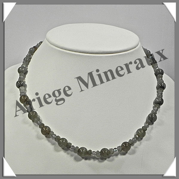 LABRADORITE - Collier Perles 4 et 10 mm en alterné - 43 cm - M001
