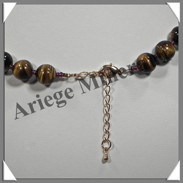 OEIL DE TIGRE - Collier Perles 10 et 12 mm en alterné - 43 cm - C002