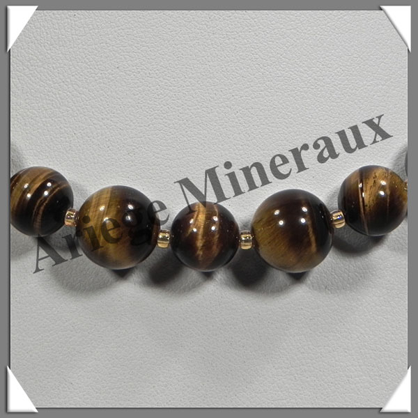 OEIL DE TIGRE - Collier Perles 10 et 12 mm en alterné - 44 cm - C001