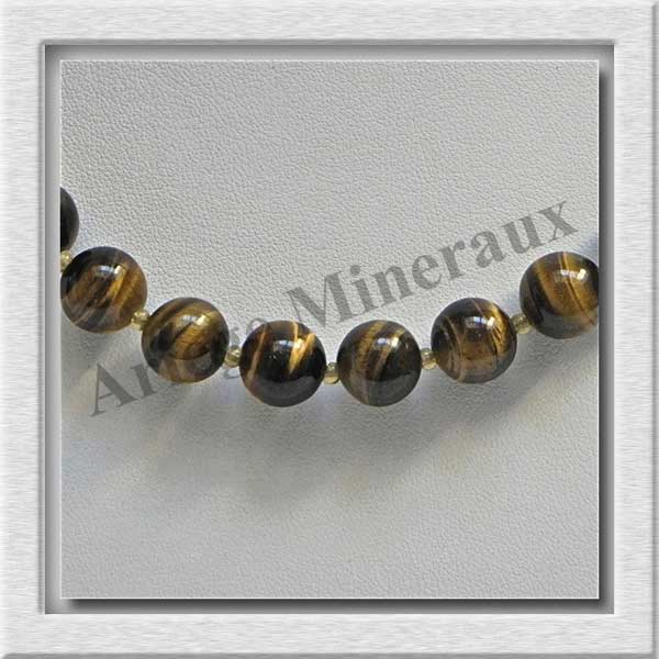OEIL DE TIGRE - Collier Perles 10 et 12 mm en alterné - 44 cm - C001 Afrique du Sud