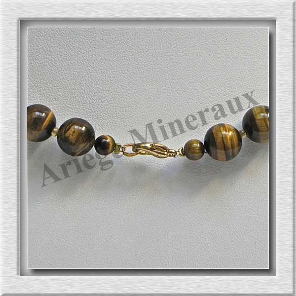 OEIL DE TIGRE - Collier Perles 12 mm - 46 cm - A004 Afrique du Sud