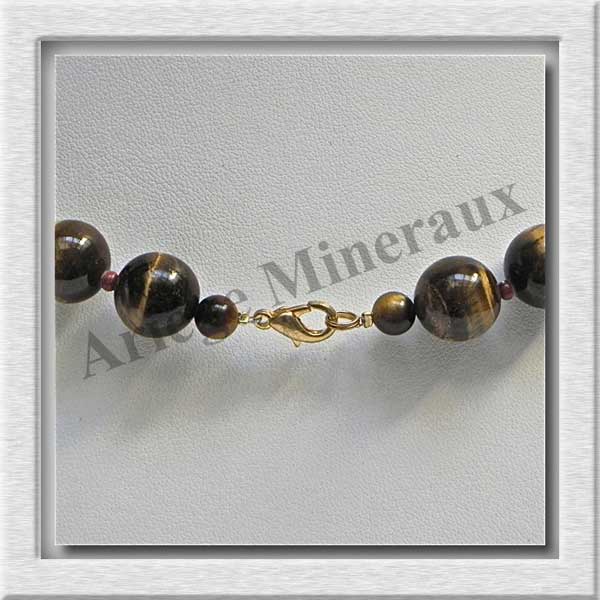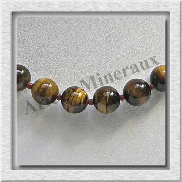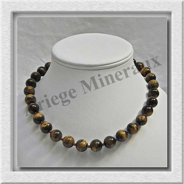 OEIL DE TIGRE - Collier Perles 12 mm - 43 cm - A006
