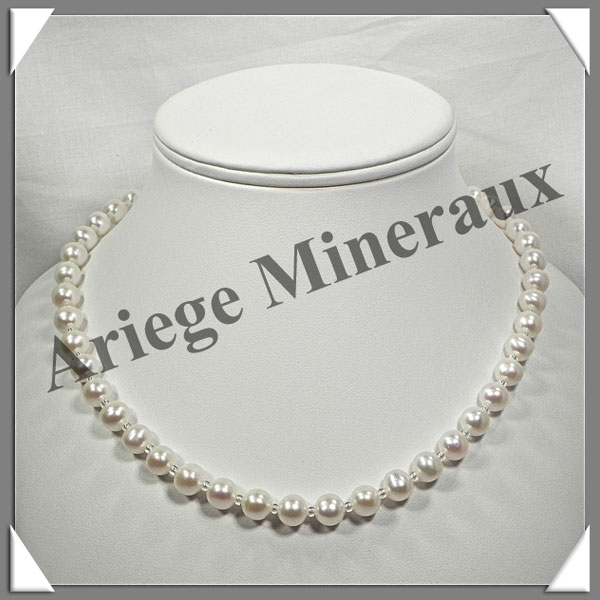 PERLES BLANCHES - Collier Perles 9 mm - 43 cm - N001 Pacifique