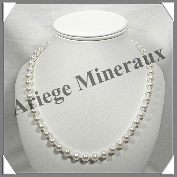 PERLES BLANCHES - Collier Perles 9 mm - 43 cm - N001 Pacifique