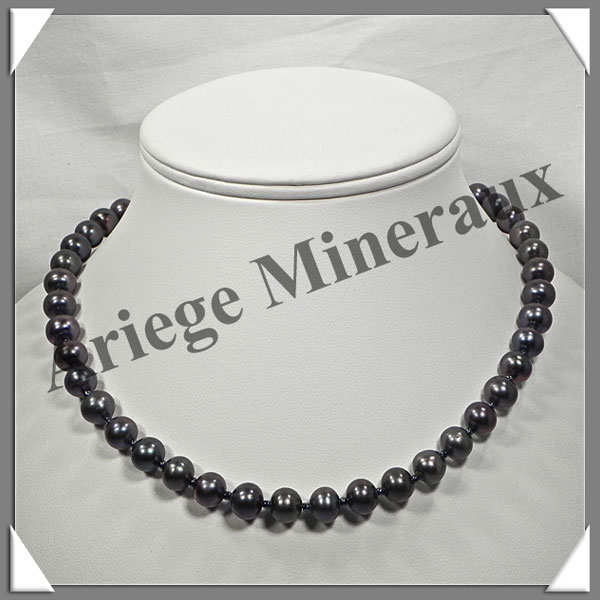 PERLES NOIRES - Collier Perles 9 mm - 44 cm - N001