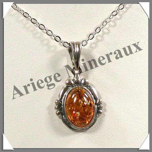 AMBRE Caramel - Pendentif Argent - Ovale - 30 mm - C008 |