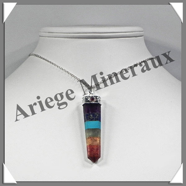 MELANGE de Minéraux - Pendentif Chakras - 7 Minéraux - Montage en Obélisque - V000