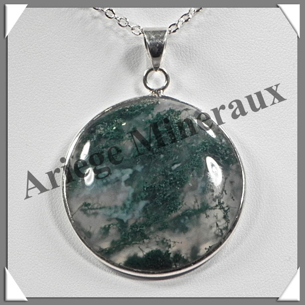 AGATE MOUSSE - Pendentif Argent - Rond - Diamètre : 35 mm - W001