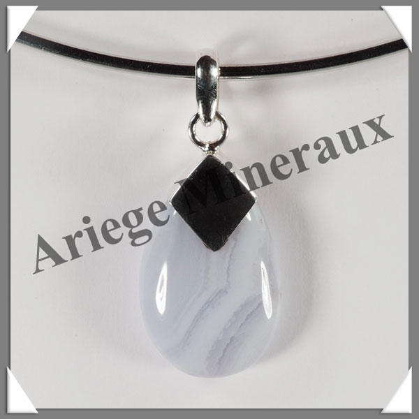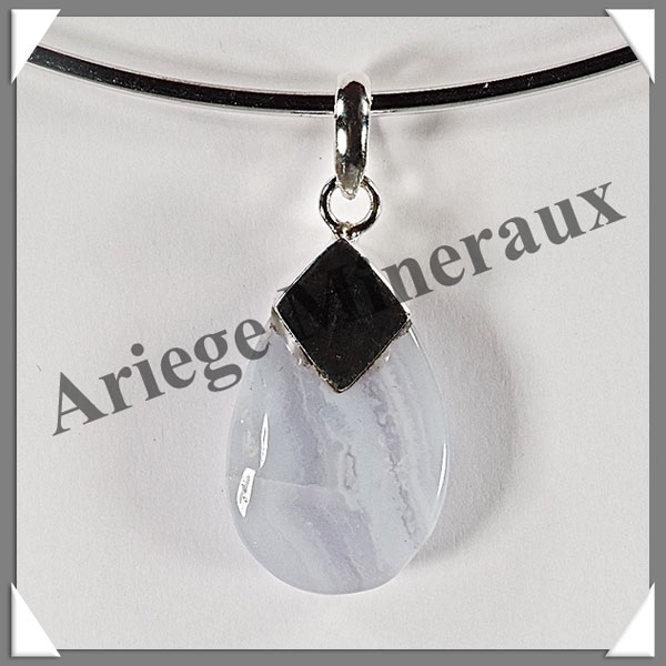 CALCEDOINE BLEUE - Pendentif Argent - Goutte - 25x25 mm - W006 Namibie
