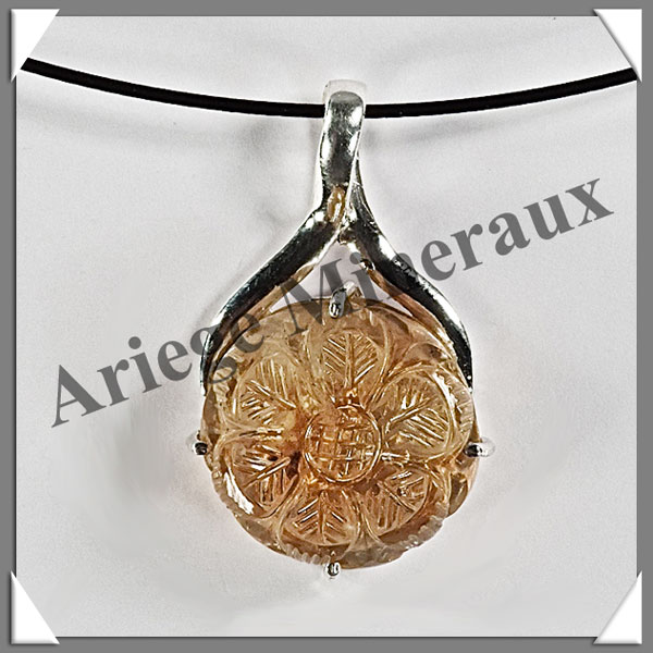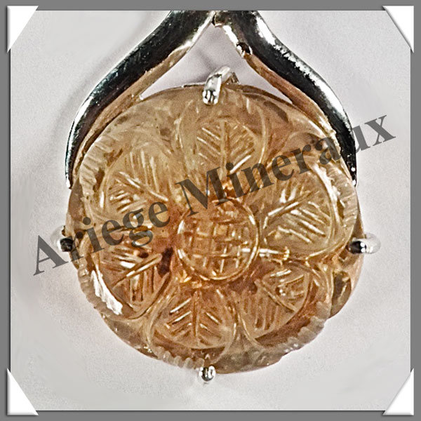 CITRINE (Naturelle) - Pendentif Argent - Rond (Ciselé) - Diamètre : 18 mm - W010
