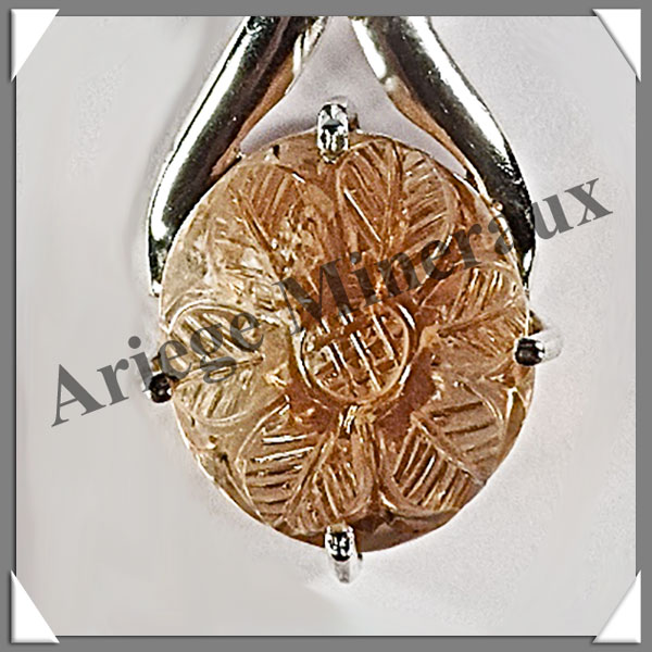 CITRINE (Naturelle) - Pendentif Argent - Rond (Ciselé) - Diamètre : 18 mm - W010 Brésil