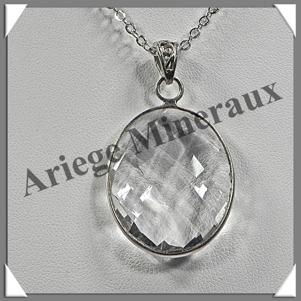 CRISTAL de ROCHE Faceté - Pendentif Argent - Ovale - 32x25 mm - W005