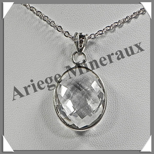 CRISTAL de ROCHE Faceté - Pendentif Argent - Ovale - 25x18 mm - W003