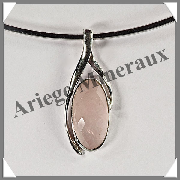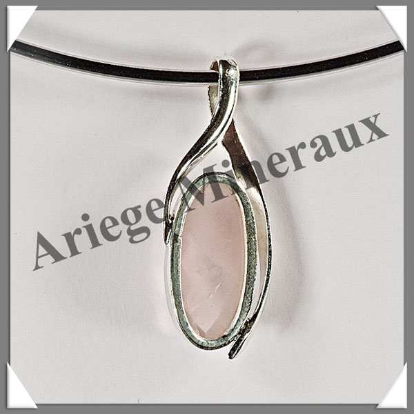 QUARTZ ROSE - Pendentif Argent - Ovale - 38x15 mm - W016