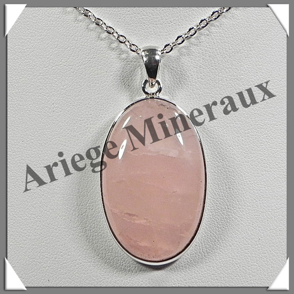 QUARTZ ROSE - Pendentif Argent - Ovale - 38x22 mm - W003