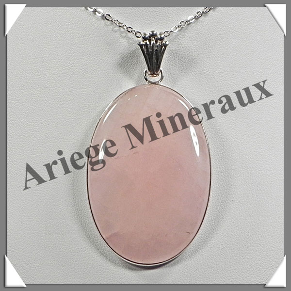 QUARTZ ROSE - Pendentif Argent - Ovale - 55x35 mm - W004