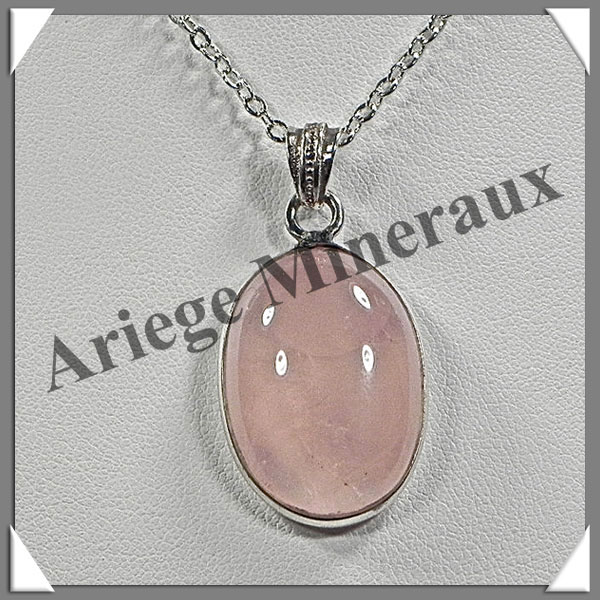 QUARTZ ROSE - Pendentif Argent - Ovale - 27x17 mm - W009