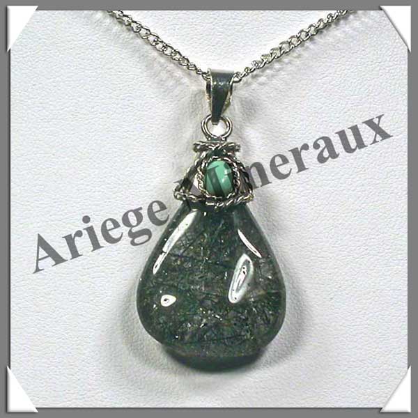 QUARTZ TOURMALINE - Pendentif Argent - Goutte - 25x10 mm - W005 Brésil